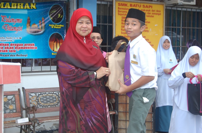 Pn.Pengetua Pn. Hjh Normah Hj. Husin membuat serahan wang zakat kepada pelajar-pelajar yang terpilih.